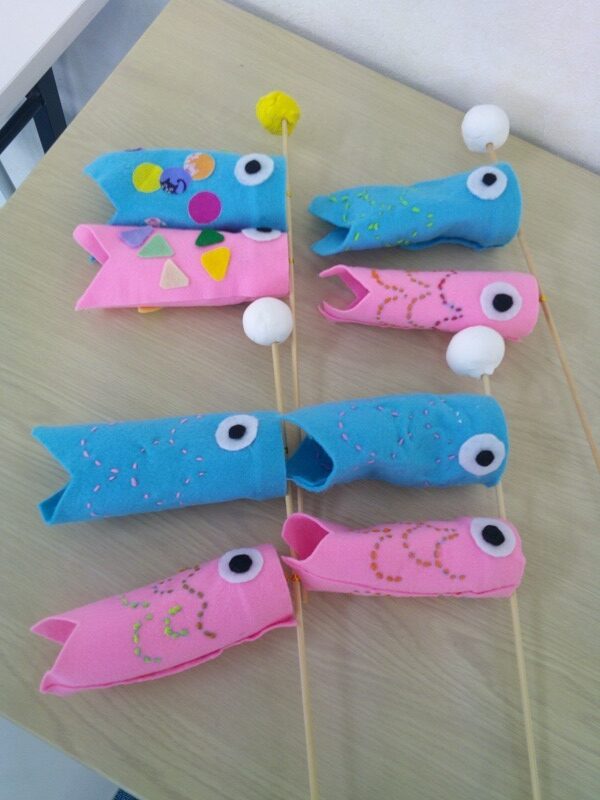 うろこを刺繍したり、布やフエルトを貼ったりして作りました。